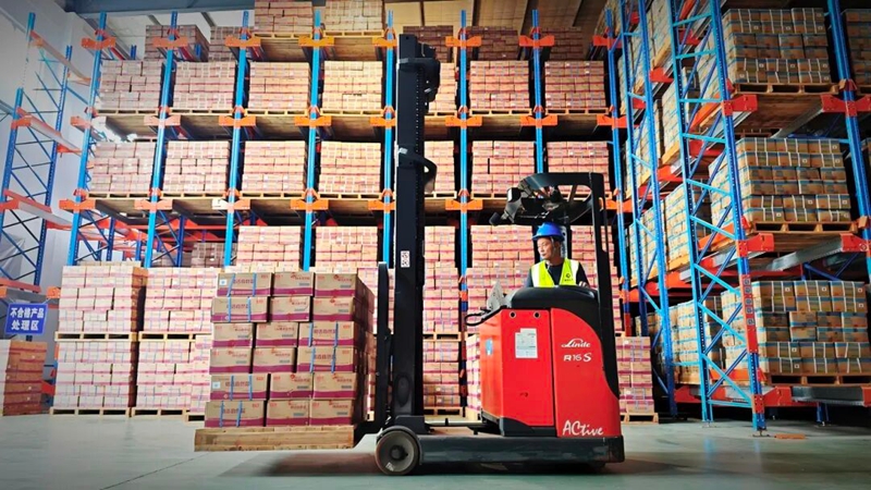 (省级食盐储备库内,叉车正在有序作业,彰显现代化保供能力)
